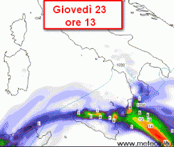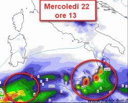 La prima cartina che vi presentiamo, riguarda la situazione attesa al meridione nelle ore centrali di mercoledì 22.