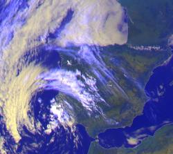 Il cambiamento sulle regioni iberiche è invero già partito: il Portogallo da giovedì è alle prese con frequenti temporali che, nella parte meridionale del Paese, sono stati anche forti. Lisbona è stata interessata anche da una intensa grandinata. La mappa mostra la struttura di bassa pressione che gli Iberici attendevano da mesi. L’immagine satellitare mostra invece la prima fioritura di temporali, anch’essi attesi per dissetare un terriorio arido ormai da troppo tempo.