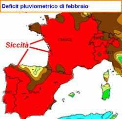La siccità che aleggia sulle nostre regioni settentrionali è davvero poca cosa contro quella davvero estrema che insiste da mesi sulla penisola Iberica. Là anche l’ondata di gelo siberiano che ha investito quasi tutta l’Europa nella prima metà di febbraio ha portato poche conseguenze, dato che il comparto iberico è sempre rimasto lungo i margini del gelo e della neve.