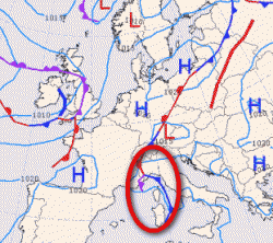 La perturbazione in questione ha dato luogo nei giorni scorsi a numerose situazioni temporalesche in Francia ed in Germania, accompagnate da grandinate con chicchi anche di notevoli dimensioni.