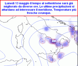 Il ricambio d’aria avverrà tra domenica e lunedì anche sul resto del paese con una sventagliata di venti settentrionali (tendenti però a grecale) a spazzare la penisola da nord a sud. Per il centro ed il sud saranno pochi i fenomeni associati al ricambio d’aria. Alcune fugaci precipitazioni in moto verso sud che si manifesteranno durante le ore centrali del giorno soprattutto lunedì 14.