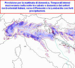Durante la notte tra sabato e domenica la bora farà il suo ingresso su tutto il nord. I temporali verranno trascinati dai venti da est anche per i settori nord-occidentali, Lombardia e Piemonte. I fenomeni avranno breve durata e saranno sostituiti nel pomeriggio-sera di domenica da un miglioramento del tempo per opera del vento da est con aria più fresca e secca.