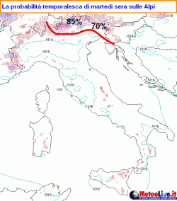 Tra martedì 23 e mercoledì 24 si tratterà di fenomeni isolati, ancorchè piuttosto violenti, e previsti essenzialmente su alta Valtellina, val Venosta, valle Aurina, Alpi Carniche, ovvero laddove le prime infiltrazioni di aria più fresca di provenienza atlantica riusciranno a fare breccia alle quote superiori. Per il resto ancora grande caldo e grande secco.
