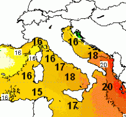 Ecco le temperature delle acque che circondano il nostro Paese. Come vedete, i 20° si toccheranno solo all’estremo sud, ed in particolare sul settore ionico. Qui si potrà entrare in acqua piu agevolmente, anche se la sensazione di freddo sarà egualmente presente.