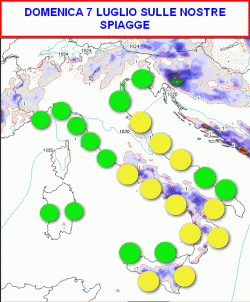 Sabato 6 luglio, il "via libera" sarà decretato per la maggior parte delle spiagge italiane. Dove vedete il bollino verde potrete stare abbastanza tranquilli; il sole avrà sicuramente la meglio su limitati addensamenti pomeridiani provenienti dalle zone interne.
