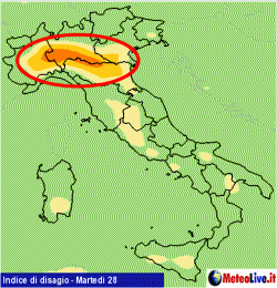 Se i valori non saranno particolarmente elevati, potrà intervenire anche l'aumento del tasso di umidità a creare qualche situazione di disagio. Vediamo dove.