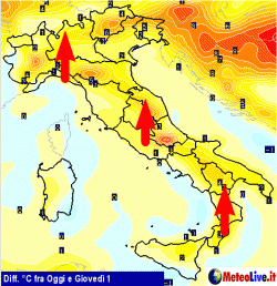 Nel primo caso le risultanze dei nostri modelli ci indicano valori massimi prossimi ai 16-18 gradi, valori che si registreranno essenzialmente sulle pianure interne. Parallelamente lo zero termico schizzerà sulle nostre montagne oltre i 3000 metri.