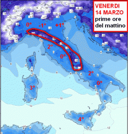 Andiamo però con ordine e analizziamo le temperature attese per le prime ore della giornata di venerdì 15 marzo.
