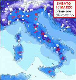 Non appena il vento si sarà calmato, il freddo dalla quota tenderà a depositarsi al suolo. Questo avverrà nelle prime ore della giornata di sabato 16 marzo.