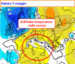 Passando dalle semplici senzazioni ai più imparziali grafici numerici osserviamo che la prima settimana di maggio vedrà sull’Italia un clima perfettamente in linea con le temperature medie stagionali. Questo pur tenendo presente alcuni lievi sbalzi, dovuti sia a fattori locali, sia al passaggio di corpi nuvolosi, il cui dettaglio è ben descritto in questo articolo https://www.meteolive.it/news/Sotto-la-lente/9/Primo-Maggio-il-tempo-del-pomeriggio-sera/37146/.