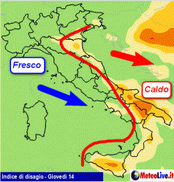 Solo nel corso del prossimo fine settimana infatti è previsto che l’aria fresca raggiunga anche quelle regioni, scacciando l’estate esasperata e riportando invece l’estate normale. Come possiamo notare dalla mappa allegata, nella giornata di giovedì 14 il caldo si presenterà ancora fastidioso su Puglia, Materano, Calabria ionica e nelle zone interne della Sicilia.