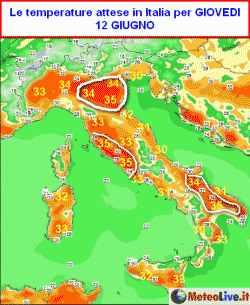 La cartina che abbiamo preparato si riferisce alla giornata di giovedì 12, ma mercoledì 11 avremo valori termici molto simili.