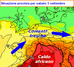 La cronologia degli eventi vede nel particolare il flusso atlantico rimanere attivo fino a mercoledì, poi una pulsazione "sbilenca" della Corrente a Getto, darà modo ad una piccola saccatura di sprofondare al largo del Portogallo. Da qui la risposta anticiclonica nord-africana, pronta a scattare verso il Mare Nostrum tra giovedì 1 e sabato 3 settembre.
