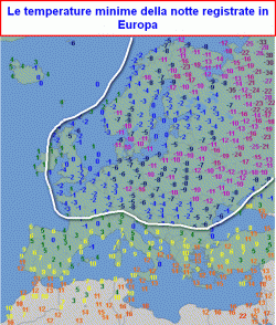 Ecco il quadro delle temperature minime registrate questa notte in Europa…e non solo.