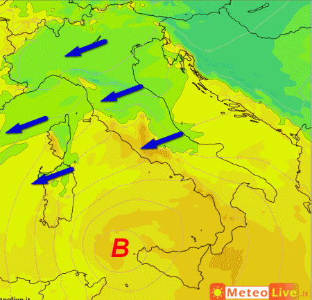 La formazione di una depressione sulle regioni meridionali veicolerà verso l’Italia centro-settentrionale aria più fredda di matrice orientale. Avremo quindi un assaggio d’inverno su queste regioni, anche se non avremo precipitazioni al seguito.