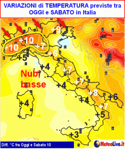 Gli SBALZI TERMICI di sabato 10 in Italia