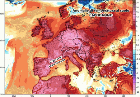Dalle mappe che vi mostriamo, si evince la sensibile differenza di temperatura. Ad inizio 2022 assaporeremo temperature di almeno 12-14°C superiori alle medie del periodo, mentre all’Epifania la colonnina di mercurio scenderà fin sulle medie o addirittura sotto di esse.