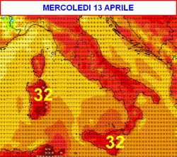 MERCOLEDI 13 APRILE: la Sardegna orientale e la Sicilia sud-orientale rischieranno i 32°!