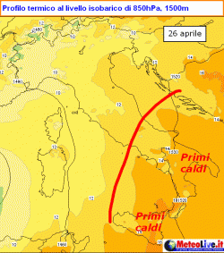 La situazione sarà annunciata dal rinforzo del vento di Scirocco che si presenterà a più riprese nel corso dei giorni fino a pennellare di mitezza il clima delle nostre regioni. Tradotto in numeri, possiamo senz’altro osservare che la colonnina di mercurio si appoggerà su due picchi principali che la porteranno al di sopra delle medie: un primo intorno al 26 aprile e un secondo intorno al 30 aprile.