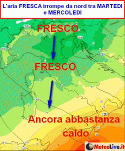 L'aria più fredda irromperà tra martedì e mercoledì al centro-nord, poi anche al meridione nei giorni seguenti.