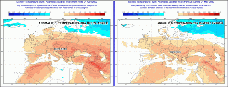 Le anomalie tra 18 aprile e inizio maggio mostrano temperature medie superiori alla norma: