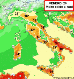 Venerdì 20, qualche grado in meno sarà possibile al centro-nord, mentre al sud la situazione si farà nuovamente abbastanza pesante.