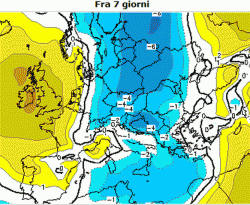 La mappa in alto ci mostra il canale di aria fresca che taglia trasversalmente l’Europa. Siamo a Pasquetta e notiamo che l’anomalia delle temperature, disegnata con il colore azzurro, tenderà però già a riassobrirsi al settentrione. Per il set completo di carte potete consultare questa pagina: https://www.meteolive.it/speciali/TEMPERATURE/55/Anomalie-delle-temperature-per-i-prossimi-7-giorni-a-1-500m-/32513/.