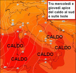 Secondo le ultimissime elaborazioni, il caldo al centro-sud e sulle Isole si farà sentire soprattutto tra mercoledì e giovedì della settimana prossima.