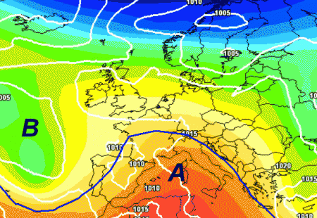 Da notare la depressione presente in Atlantico che sarà responsabile delle piogge attese al nord all’inizio della settimana prossima.