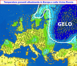 Ecco le temperature presenti in Europa e sulla Vicina Russia questa mattina. Si consiglia di ingrandire la mappa per avere un migliore riscontro visivo.