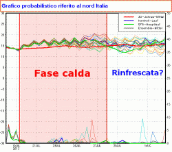 La linea media ci conferma pertanto quanto vi abbiamo appena anticipato: a partire dal 21-22 luglio, e probabilmente sino a fine mese, ci aspetta un generale rialzo delle temperature. I valori si attesteranno appena al di sopra della norma al nord, dove la colonnina di mercurio si porterà fino a 2-3°C al di sopra delle medie di riferimento.