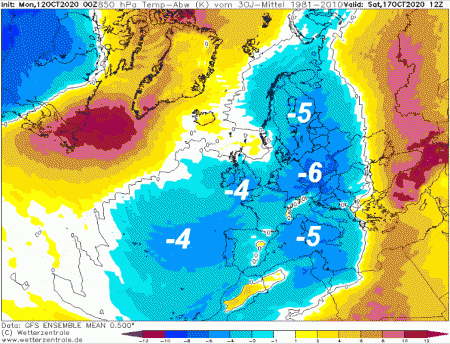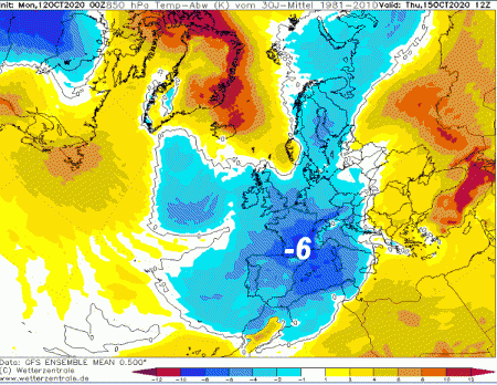 Il "sacco" di aria fredda porterà anomalie al ribasso fino a 6° tra il Mediterraneo centro-occidentale e il sud della Francia. Oltre i nostri confini avremo invece anomalia termiche positive molto eclatanti sulla Groenlandia e tra l’Europa orientale e la vicina Russia.