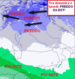 Ricordiamo che il freddo da est (ovvero a matrice continentale) ha spessore decisamente inferiore rispetto al freddo artico. Di conseguenza viene percepito meglio al suolo, pur non presentando carattere instabile.