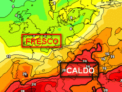 Rispetto alle emissioni precedenti, quelle odierne limitano la rifrescata, stante un maggiore sprofondamento della saccatura ad ovest e conseguente risalita di aria bollente dal nord Africa.