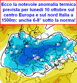 La situazione, come si evince chiaramente dalle mappe relative all’anomalia prevista, non si sbloccherà facilmente sino alla metà di ottobre e potrebbe anche proseguire, sia pure non più in questi termini, anche per la seconda metà del mese, se arrivasse un nuovo contributo artico a dar manforte a quello presente ormai da giorni a ridosso del nostro Paese.