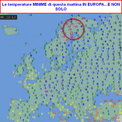 Ecco lo spaccato delle temperature minime registrate in Europa (e non solo) nella mattinata odierna (mercoledì 10 dicembre). Vi consigliamo di ingrandire l’immagine per poter leggere meglio i valori.