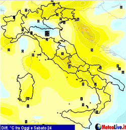 Per una panoramica generale del campo termico previsto per l’intera settimana vi consigliamo di consultare il seguente indirizzo https://www.meteolive.it/speciali/MAPPE/73/Differenze-di-temperatura-al-suolo-dei-prossimi-giorni-rispetto-ad-oggi/32852/ .