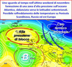 L’aumento fisiologico della pressione e delle altezze geopotenziali in sede oceanica, sarebbe poi preludio ad una possibile (ma non ancora certa) "depressione" dei geopotenziali sul comparto euroasiatico. La parte conclusiva di novembre potrebbe quindi portare ad un nuovo versamento d’aria fredda su Russia, Penisola Scandinava e nord-est Europa, aprendo nuovamente scenari di inverno anche sul tempo di casa nostra.