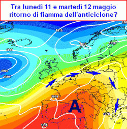 Dopo una breve sfuriata temporalesca, attesa nel week-end 9-10 maggio, da ovest potrebbe inserirsi con decisione l'anticiclone delle Azzorre.