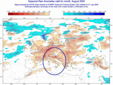 Ad una prima occhiata, il prossimo mese di agosto potrebbe essere moderatamente caldo e con precipitazioni complessivamente inferiori alle medie del periodo.