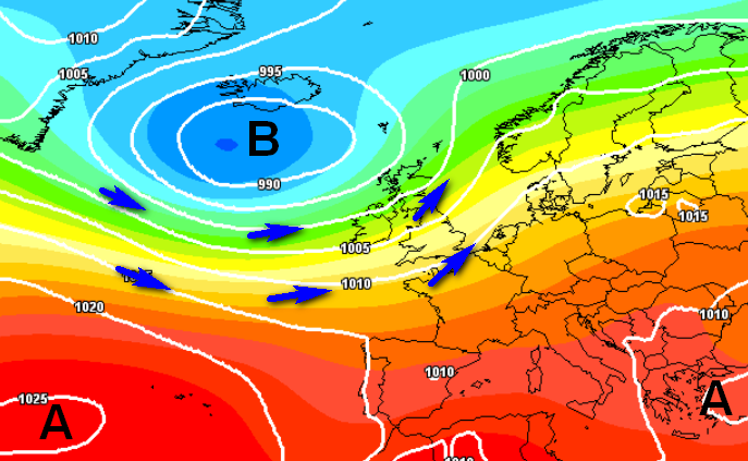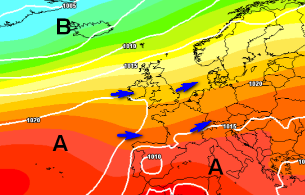 Le correnti perturbate sfiorano le Alpi e il settentrione, portando di tanto in tanto instabilità associata a qualche temporale e limando le temperature:
