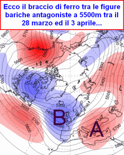 Entro i primi giorni di aprile finirebbe per isolarsi anche una depressione nell’area mediterranea, in grado di rinnovare condizioni di instabilità senza che l’alta pressione sia in grado di "prendere in mano" la situazione.