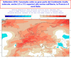 Le temperature del mese di settembre risulteranno superiori alla media su tutto il Continente europeo con valori anche marcatamente al di sopra del normale, sino a 3°C.