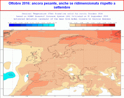 Il mese di OTTOBRE segnerà un certo ridimensionamento dell’anomalia termica positiva sul Continente, anche se si rimarrà al di sopra della media.