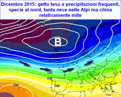 Dicembre invece vedrebbe abbassarsi di latitudine il fronte polare con una maggiore ingerenza delle perturbazioni atlantiche nel Mediterraneo in seno ad un flusso di correnti mediamente zonale e con l’alta pressione sempre più schiacciata a sud.