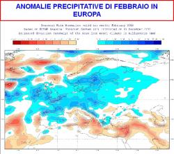 Dal punto di vista pluviometrico sembrerebbe un febbraio molto piovoso sull’Europa centrale e occidentale, secco invece sulla Scandinavia, il bacino del Mediterraneo e l’Italia (terza mappa).