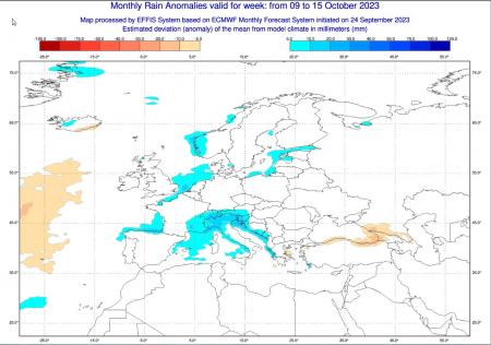 Le correnti atlantiche dovrebbero forzare l’alta pressione a spostarsi verso levante in direzione dell’Europa orientale. Da ovest potrebbe arrivare un cambiamento, messo in risalto anche dalle anomalie pluviometriche previste per il medesimo periodo:
