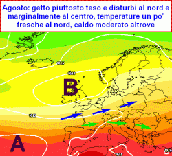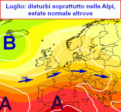 questo mese estivo si prevedono quasi sempre temperature nella media e solo poche punte di calore, mentre nelle Alpi a tratti potrebbe fare più fresco del normale.