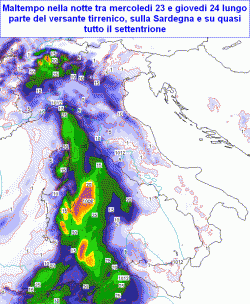 L’energia del mare ancora caldo, il ramo ascendente della corrente a getto a favorire la formazione di nubi a sviluppo verticale, il contrasto termico e il consistente apporto di aria umida: se la saccatura prevista dal modello americano per mercoledì 23 dovesse trovare conferma, nella notte su giovedì 24 il maltempo colpirebbe duro su Sardegna, il medio ed alto Tirreno e gran parte del nord, specie il settore occidentale.
