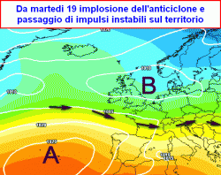 Infatti da martedì 19 in poi la media degli scenari del modello americano prevede una rapida flessione del campo barico sull’Italia e il passaggio di impulsi instabili da ovest, capaci di determinare momenti temporaleschi e di ridimensionare di qualche grado le temperature, in particolare al settentrione.